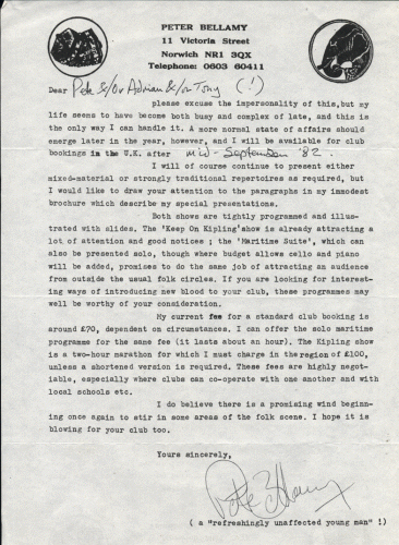 A 1982 letter to us from Peter Bellamy